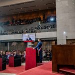 “Por el bien de todos, primero los pobres”, prometió poco después en un discurso en el Zócalo ante miles de seguidores que la vitoreaban, y se comprometió a continuar el legado del actual mandatario, Andrés Manuel López Obrador.